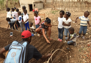 1. Preschoolers plant with Balaguel.