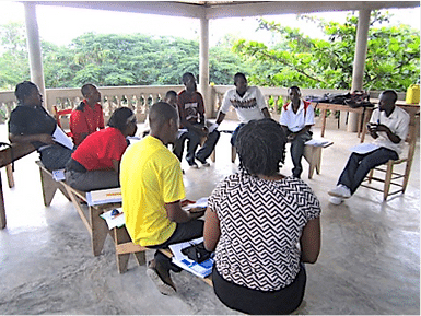 MCLC’s SASA! team also trained an additional group of people on how to conduct baseline surveys and focus groups in a near by community called Nan Kafe, to learn about the population’s perceptions and beliefs about power and violence against women and girls.